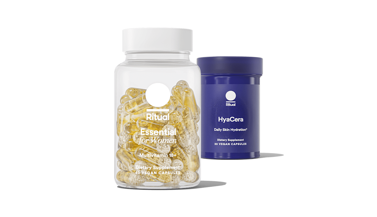 - HyaCera™ Daily Skin Hydration Breakthrough skin-from-within formula that supports hydration, elasticity, and visible wrinkle reduction. Pricing: $54/month (first delivery $43.20). Direct link: https://ritual.com/products/hyacera