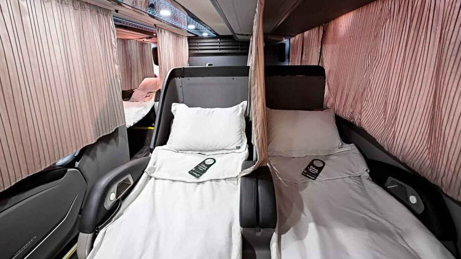 - Executivo / Leito-Cama: O topo da linha — camas de verdade, massageadores, telas individuais, kit amenidades e até serviço de bordo em algumas marcas. Preços ainda acessíveis graças à economia da plataforma.