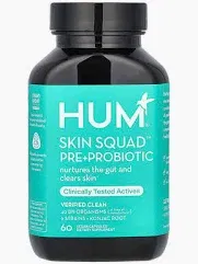 - Skin Squad Pre+Probiotic 40 billion organisms + 9 probiotic strains + konjac root to nurture the gut-skin axis and clear non-cystic acne from within. 60 vegan capsules (2-month supply). Price: $40 A favorite among beauty editors and dermatologists for visible glow in 4–8 weeks. Direct link: https://www.humnutrition.com/product/48/skin-squad-pre-probiotic